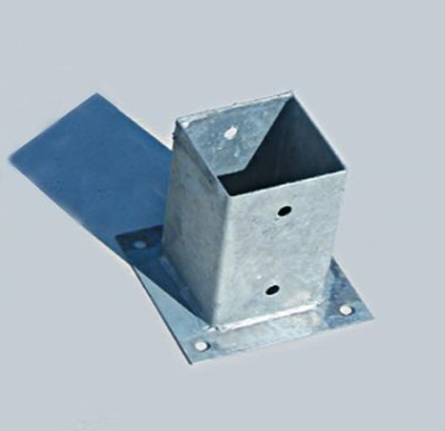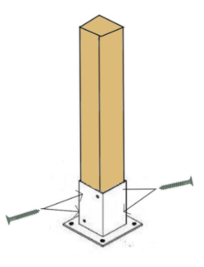 Schritt 4.  Setzen Sie den Pfosten in die Basis ein und schrauben Sie ihn mit Schrauben von gegenüberliegenden Seiten fest, während Sie die vertikale Position überprüfen. Zum Befestigen der Pfosten an der Basis reichen 2 Schrauben mit einem Durchmesser von 10 x 50 mm. Die Schrauben sollten auf jeder Seite 1 eingeschraubt werden, bevor zuvor 6 Löcher gebohrt werden. Wir wählen die Löcher, in die die Schrauben geschraubt werden, entsprechend der Position des Pfostens und platzieren ihn so vertikal.