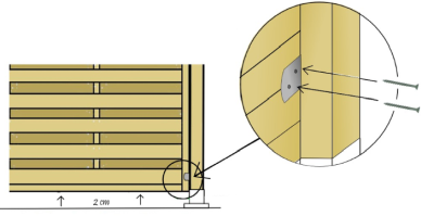 Schritt 6. Schrauben Sie die Spannweite einige Zentimeter über dem Boden, um sie von der Oberfläche zu isolieren, auf der das Holz Feuchtigkeit aufnehmen kann. Die Spannweite zum Stecker wird mit zwei Schrauben (3,5 x 35 mm) festgeschraubt.