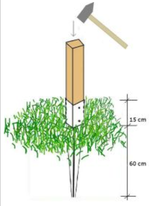 Tipp: Das Holzstück zum Einschlagen sollte möglichst den gleichen Querschnitt wie der Pfosten haben – das erleichtert den späteren Einbau.