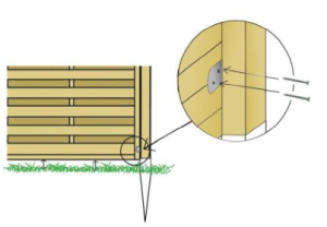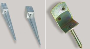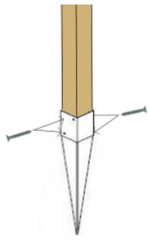 Zaunelemente, Gitter und Pergolen werden mit Holzpfosten montiert, die entweder in Einschlaghülsen oder in Bodenankern aus Metall verankert sind. Einschlaghülsen eignen sich besonders für weichen Boden wie Erde oder Rasen, da sie die Pfosten vom direkten Bodenkontakt fernhalten. Für harte Untergründe empfehlen sich Metallfüße zum Aufdübeln. Die Zaunfelder werden mit Metallwinkeln und Schrauben an den Pfosten befestigt – 4 Winkel pro Element.