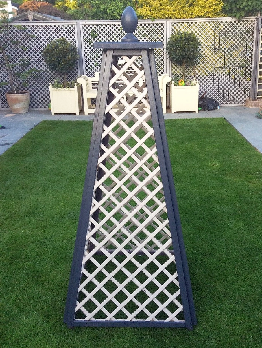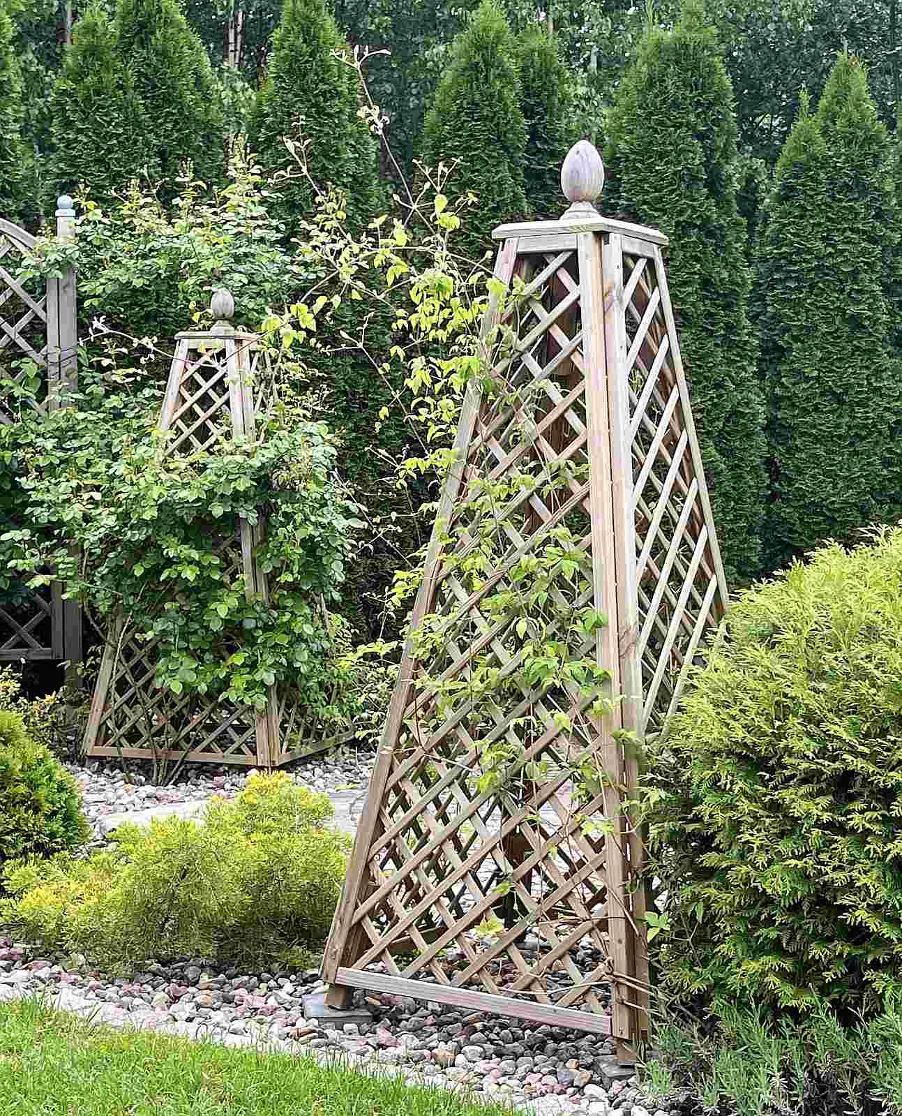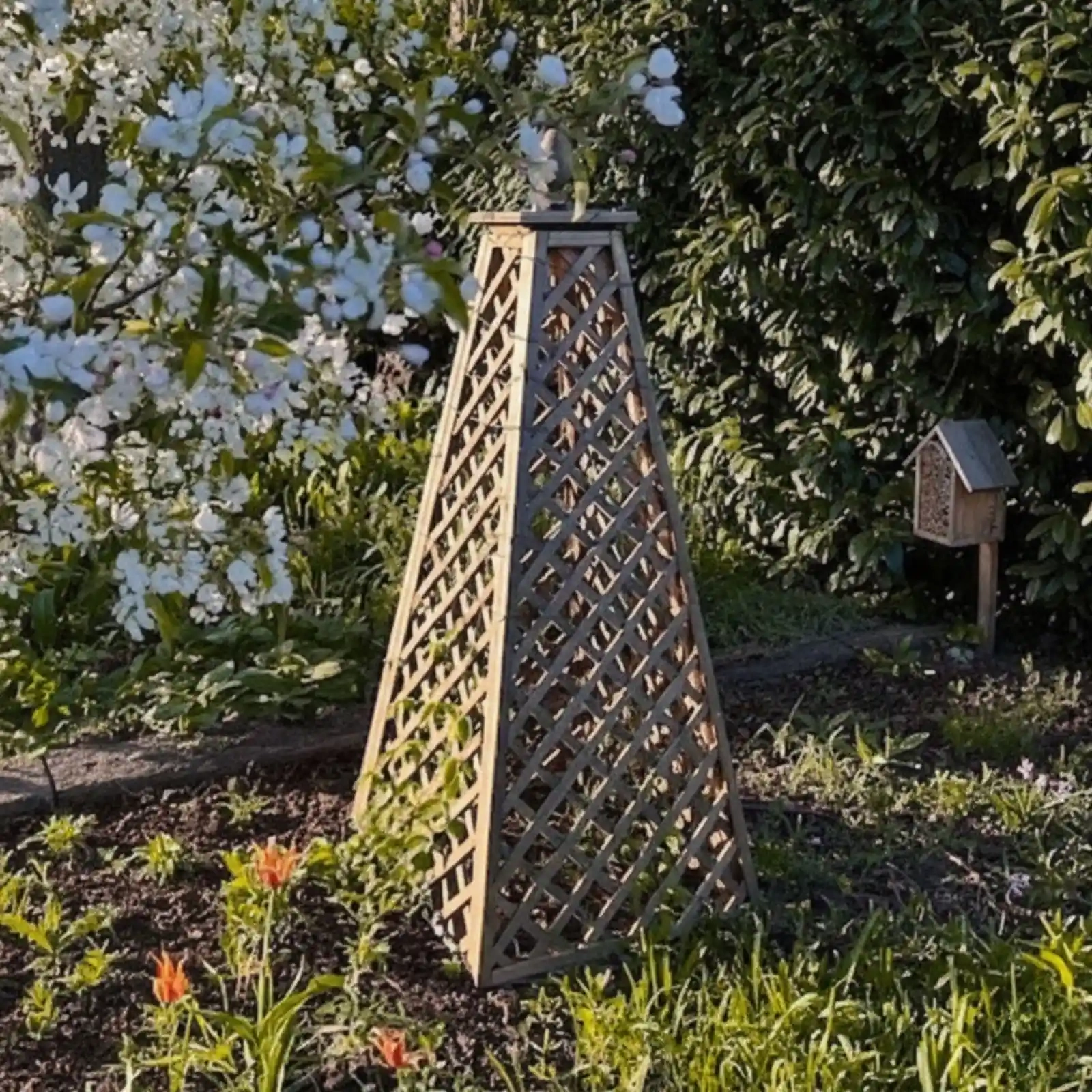 Obelisken sind die perfekte Ergänzung für Ihre Gartengestaltung. Sie bestehen aus durchbrochenen Gittern und werden von einer dekorativen Kugel gekrönt.