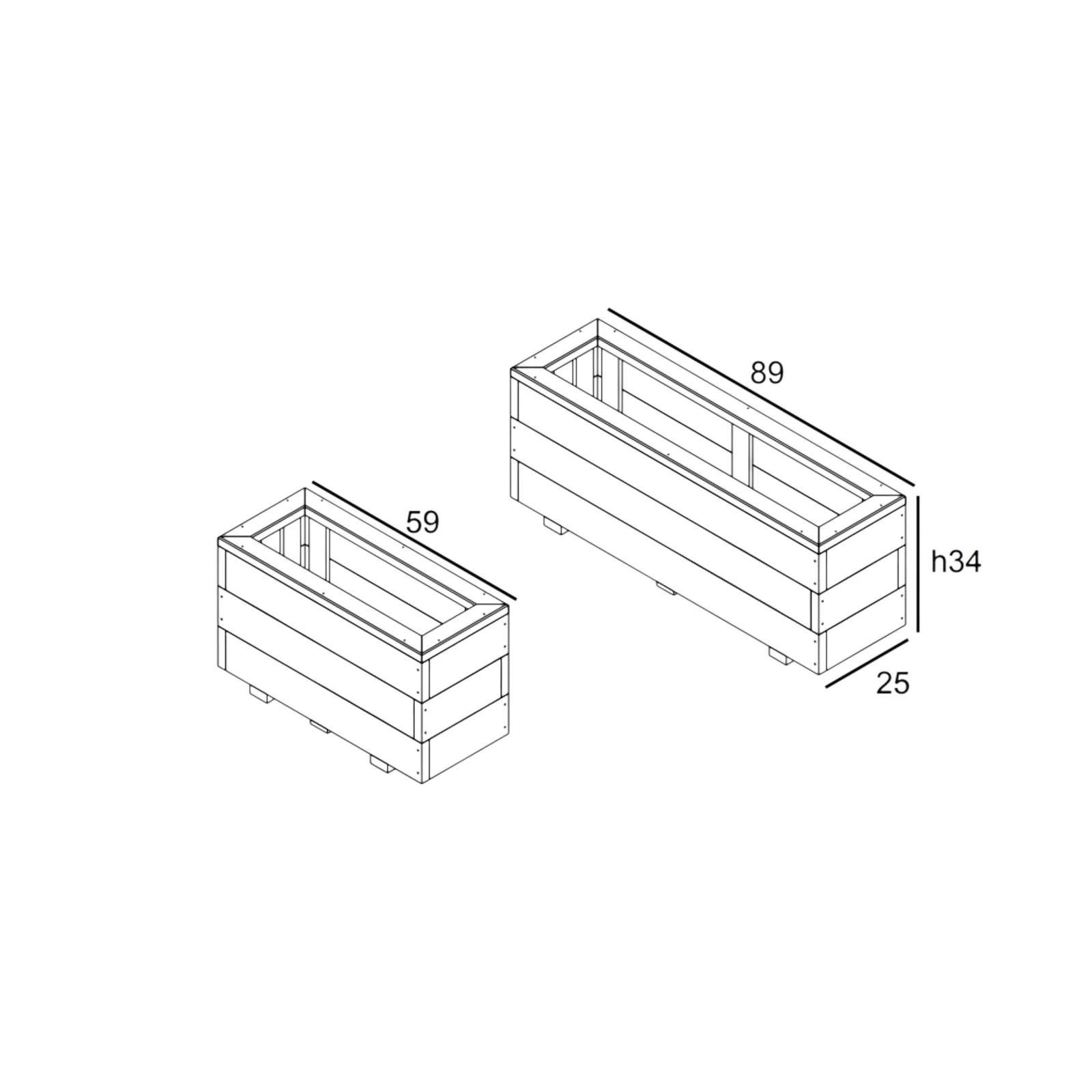 Pflanzgefäße in verschiedenen Breiten und Längen. Alle Pflanzgefäße haben eine Höhe von 34 cm vom Boden bis zum Rahmen. Innenhöhe jedes Pflanzgefäßes: 30 cm