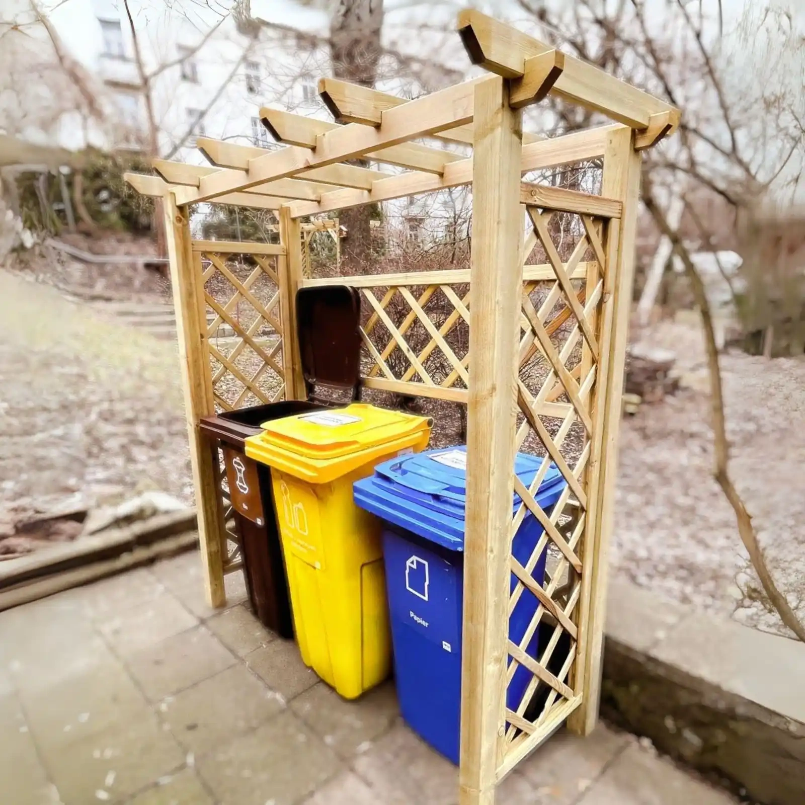 • Enhance the aesthetics of your outdoor space with the New York pergola, wooden bin storage, designed to stylishly camouflage and organise your waste bins.