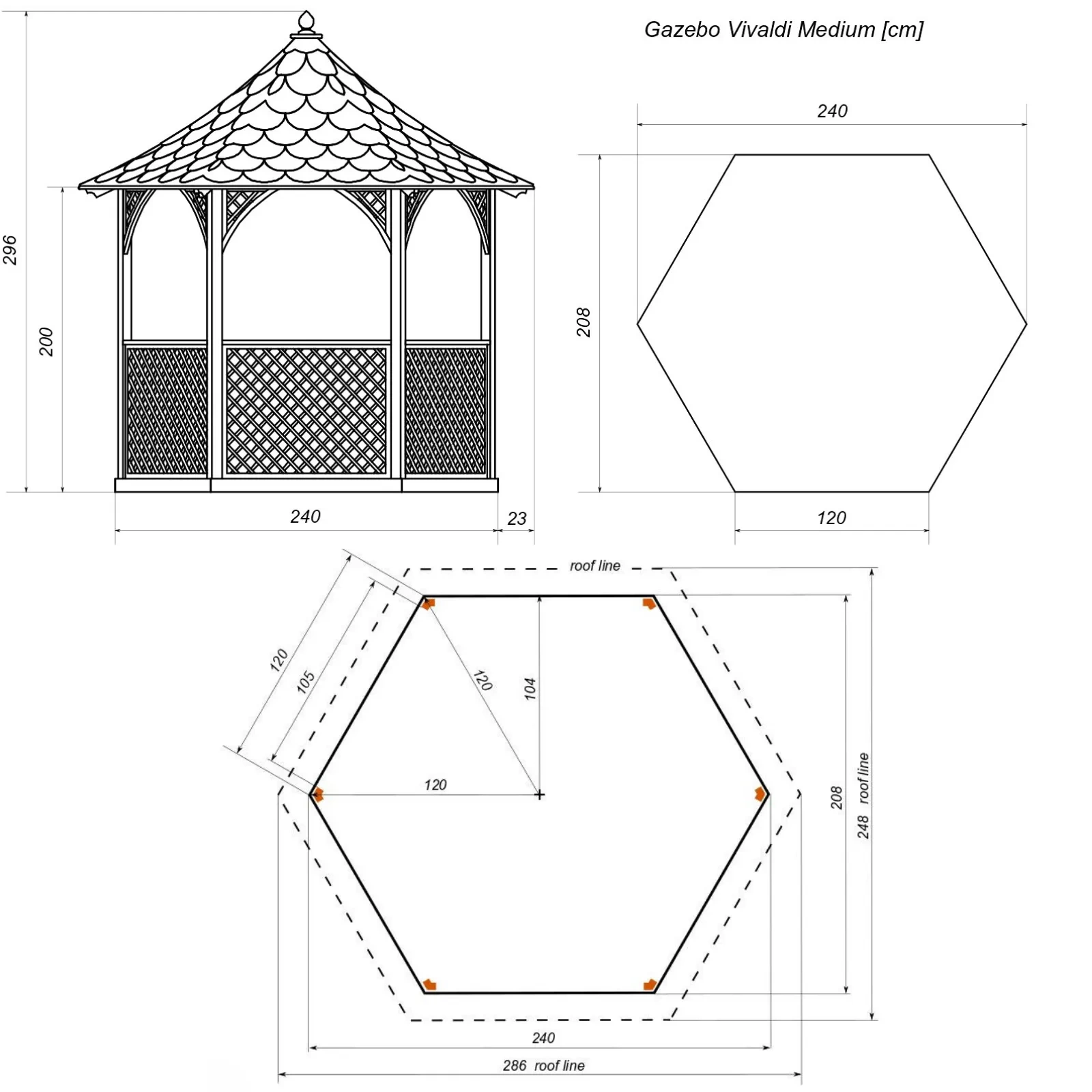 Vivaldi Maxi 6-angle gazebo h330 fi396 with red shingles