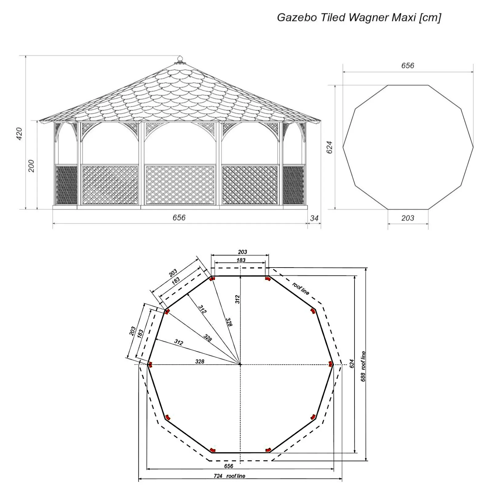 Pabellón Wagner decagonal es la elección perfecta para quienes aprecian el espacio, la durabilidad y un aspecto elegante en su jardín. Diseñado pensando en la funcionalidad, el pabellón es perfecto para reuniones familiares, relajarse o celebrar fiestas al aire libre. Su amplia distribución ofrece espacio para mesas, sillas y decoraciones para crear un ambiente único para cualquier ocasión.