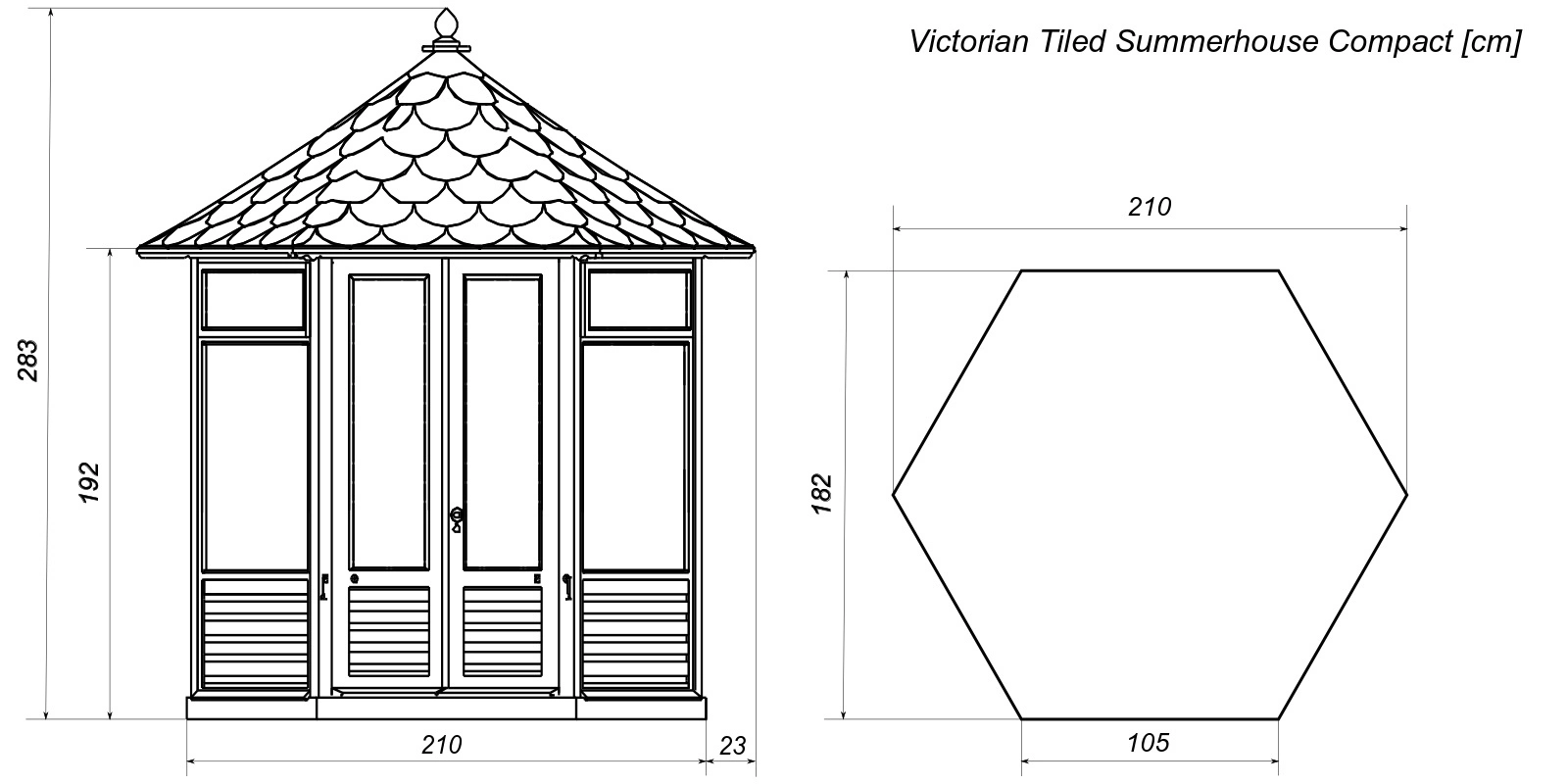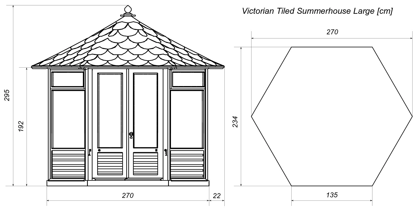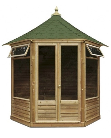 Casa de verano victoriana mediana 2 ventanas fi 235 3/4 cristal con tejas verdes