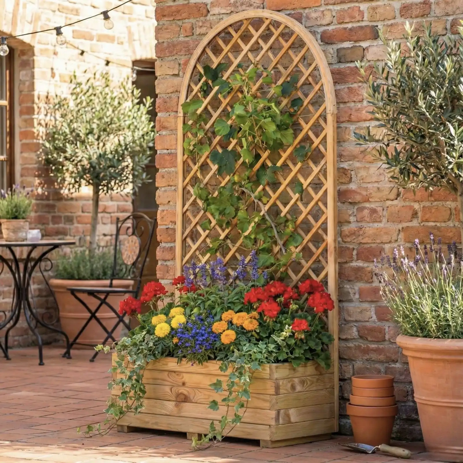 - Ideal para plantas trepadoras: El enrejado alto ofrece un soporte excelente para plantas trepadoras y enredaderas, permitiendo crear paredes verdes.