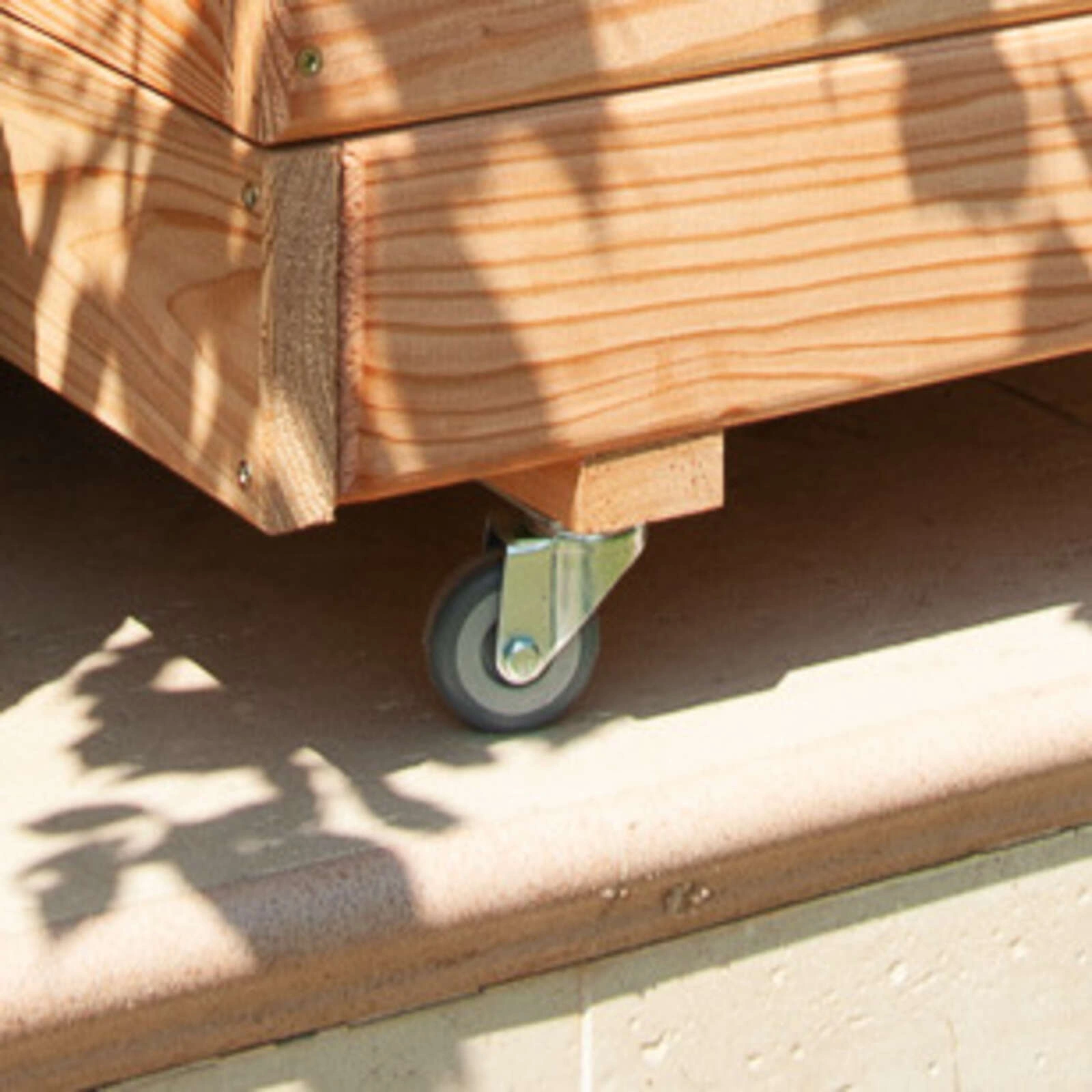Gracias a la instalación de las ruedas, la jardinera se puede mover fácilmente, lo cual es especialmente útil al reorganizar el jardín o la terraza.