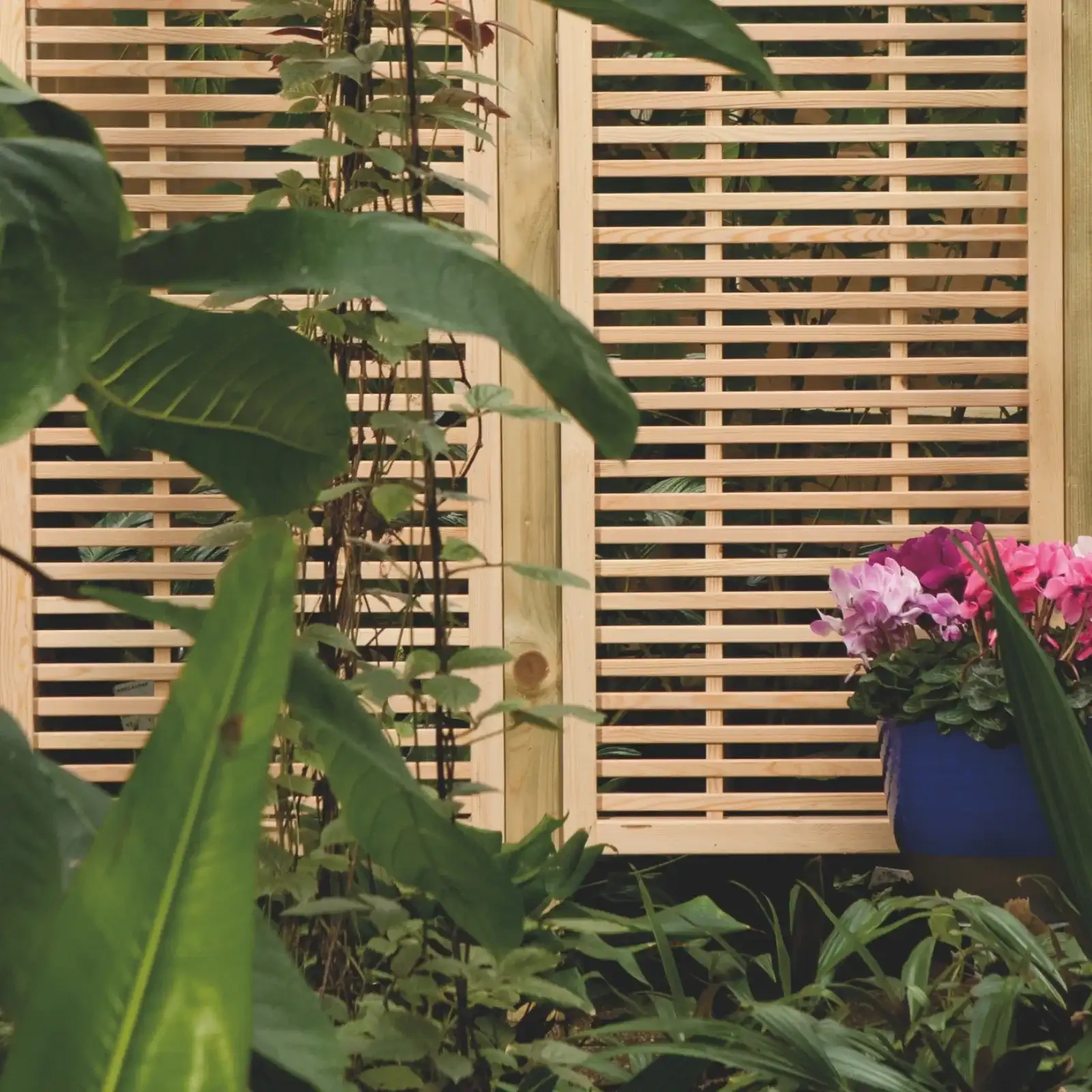 El enrejado de 180x180 cm viene con una lama adicional para fortalecer su estructura. Todos los enrejados tienen un marco sólido de 3,4 x 4,4 cm y un hueco entre listones de 2 x 0,8 cm.