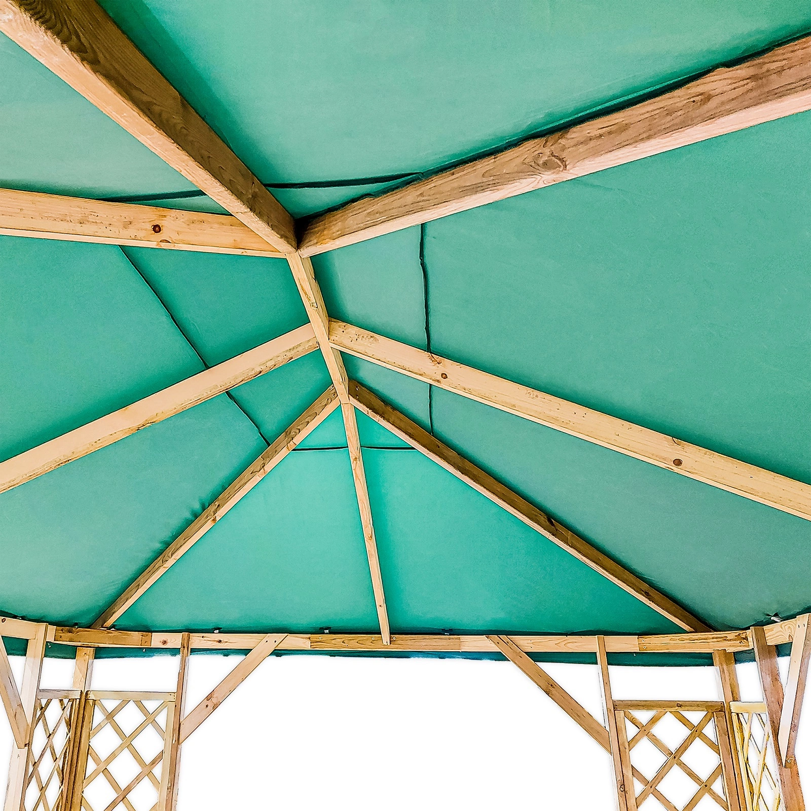 Dach wykonany jest z wytrzymałego poliestru, co zapewnia mu wodoodporność. Chroni przed słońcem, lekkim deszczem i niekorzystnymi warunkami atmosferycznymi. Wzmocnione narożniki zwiększają trwałość. Zalecamy zdejmowanie dachu na zimę.