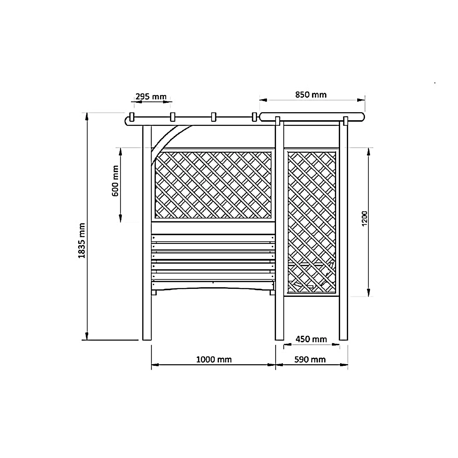 La Pérgola Milton clásica con banco doble es una estructura elegante y funcional que quedará perfecta para cualquier jardín, terraza, balcón o patio. Pérgola Milton tiene capacidad para 4 personas, y entre los bancos encontrarás una funcional mesa para tomar café, té o tu libro favorito, convirtiéndolo en el lugar perfecto para relajarse con familiares y amigos.