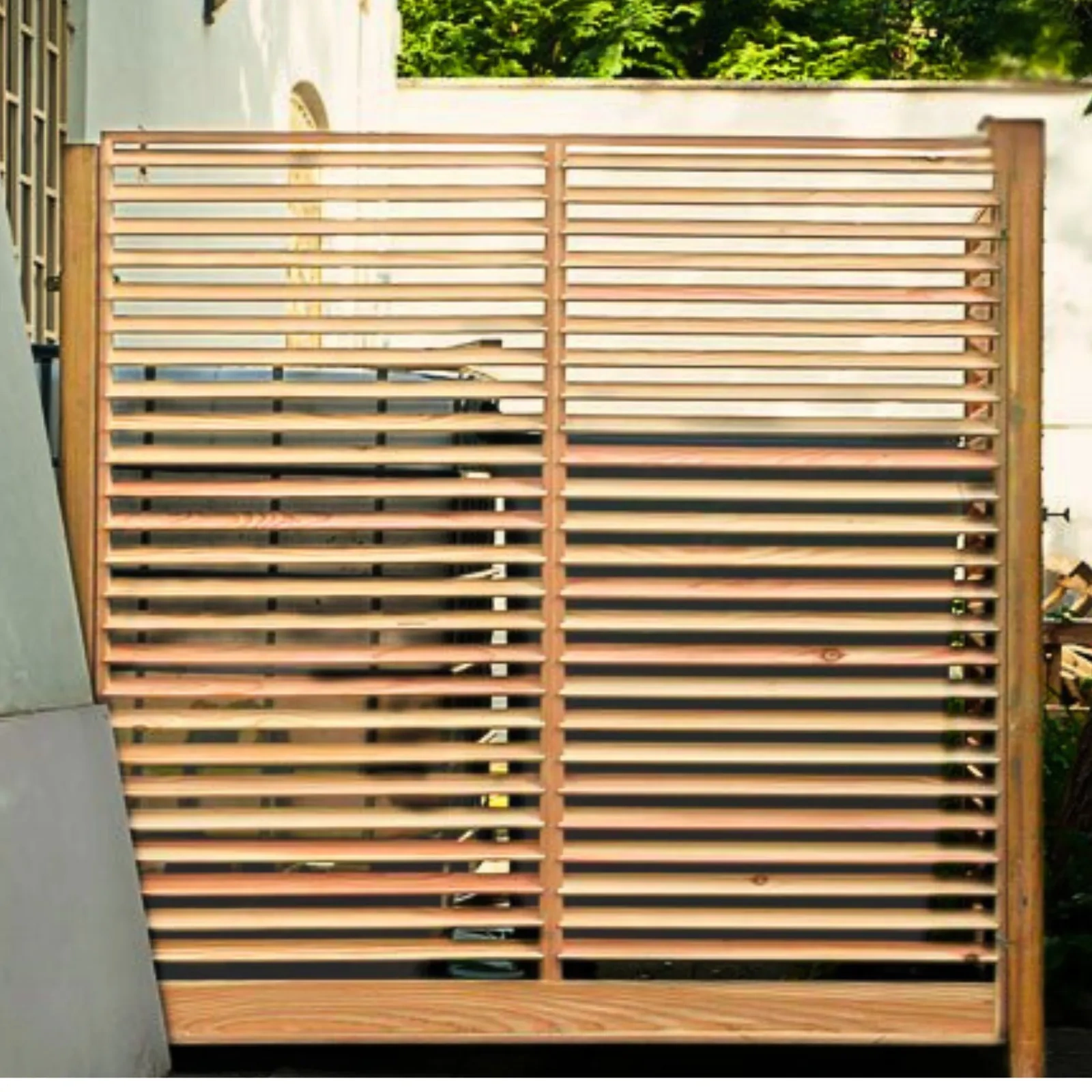 - Diseño veneciano con lamas inclinadas – La disposición horizontal de las lamas permite mantener la privacidad sin bloquear completamente la luz ni la circulación del aire. Este diseño brise-vista es ideal para quienes buscan un cerramiento con un equilibrio perfecto entre protección y apertura visual.