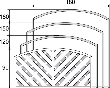 Clôture en V avec arche et fenêtres. V h160/180/160x180