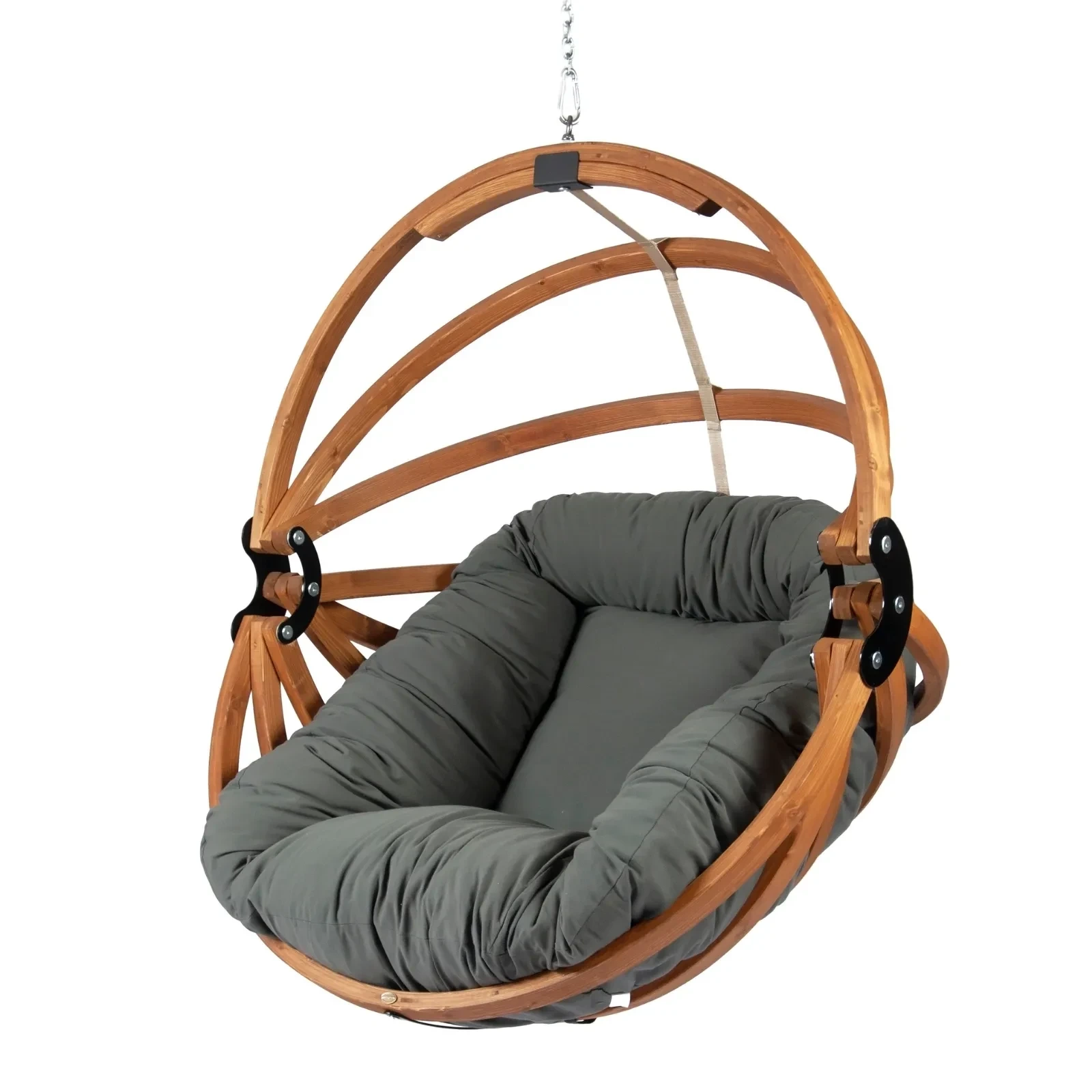 Grâce à ses formes courbées en bois lamellé-collé et à sa conception ergonomique, ce fauteuil suspendu allie design contemporain et confort absolu. Installez-le sur votre terrasse, dans votre jardin ou même à l'intérieur pour créer un coin de détente unique.