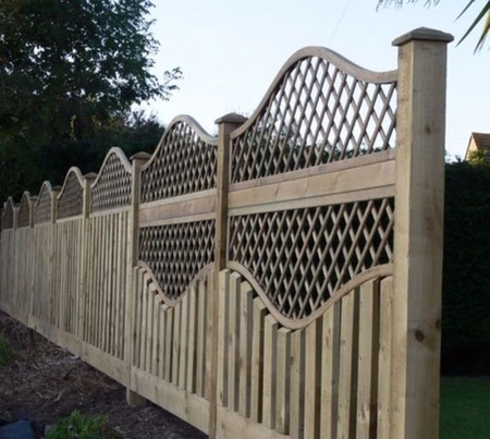 - Treillis anglais classique, un modèle conçu pour décorer les clôtures. Le treillis est suffisamment solide pour être utilisé comme élévation de clôture. L'arc en lamellé-collé plié et collé garantit la stabilité dimensionnelle. Le caillebotis ne se déform
