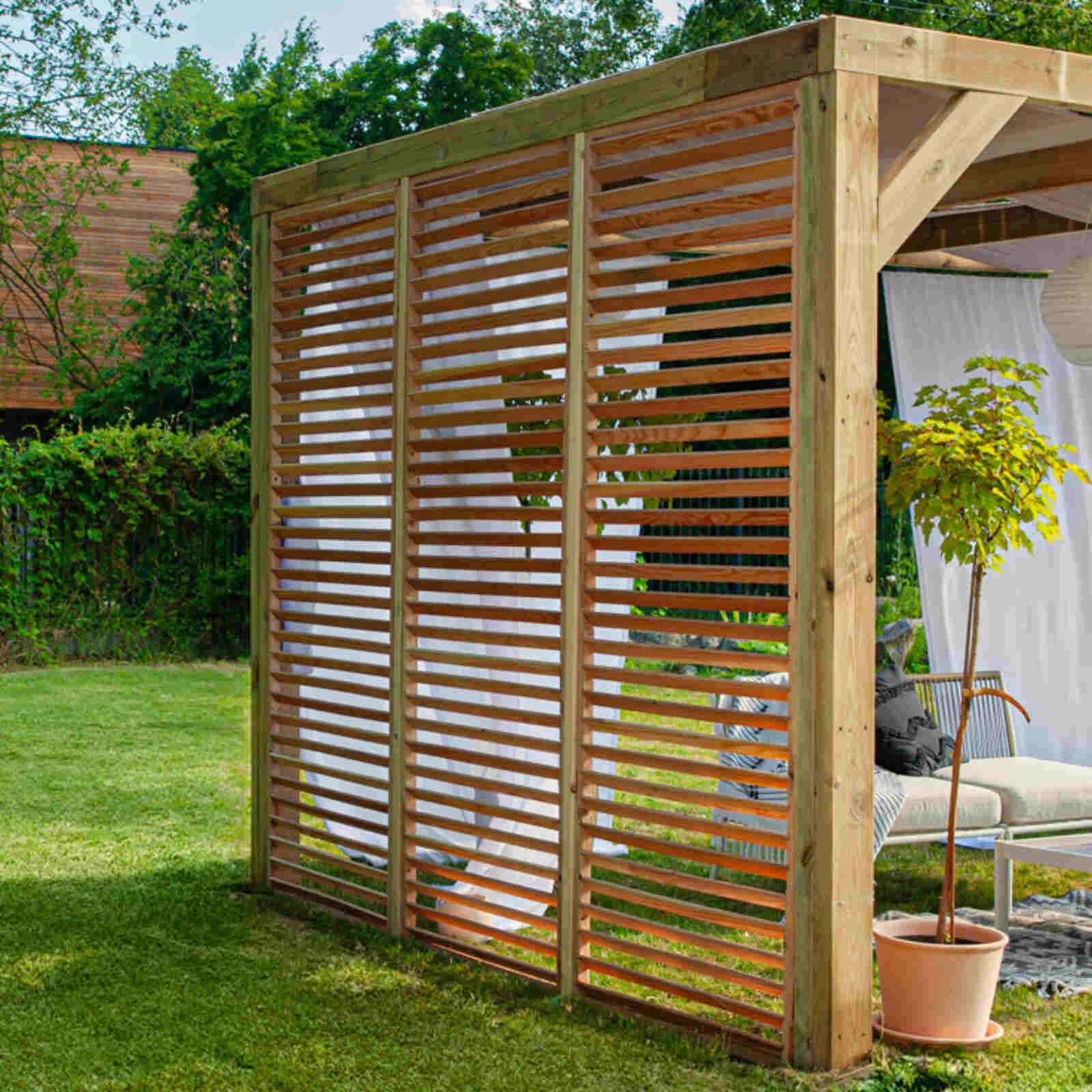 Una composizione di pannelli veneziani completa di pali per una pergola a parete di 3, 4, 5 metri.